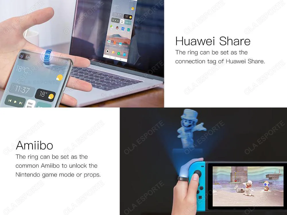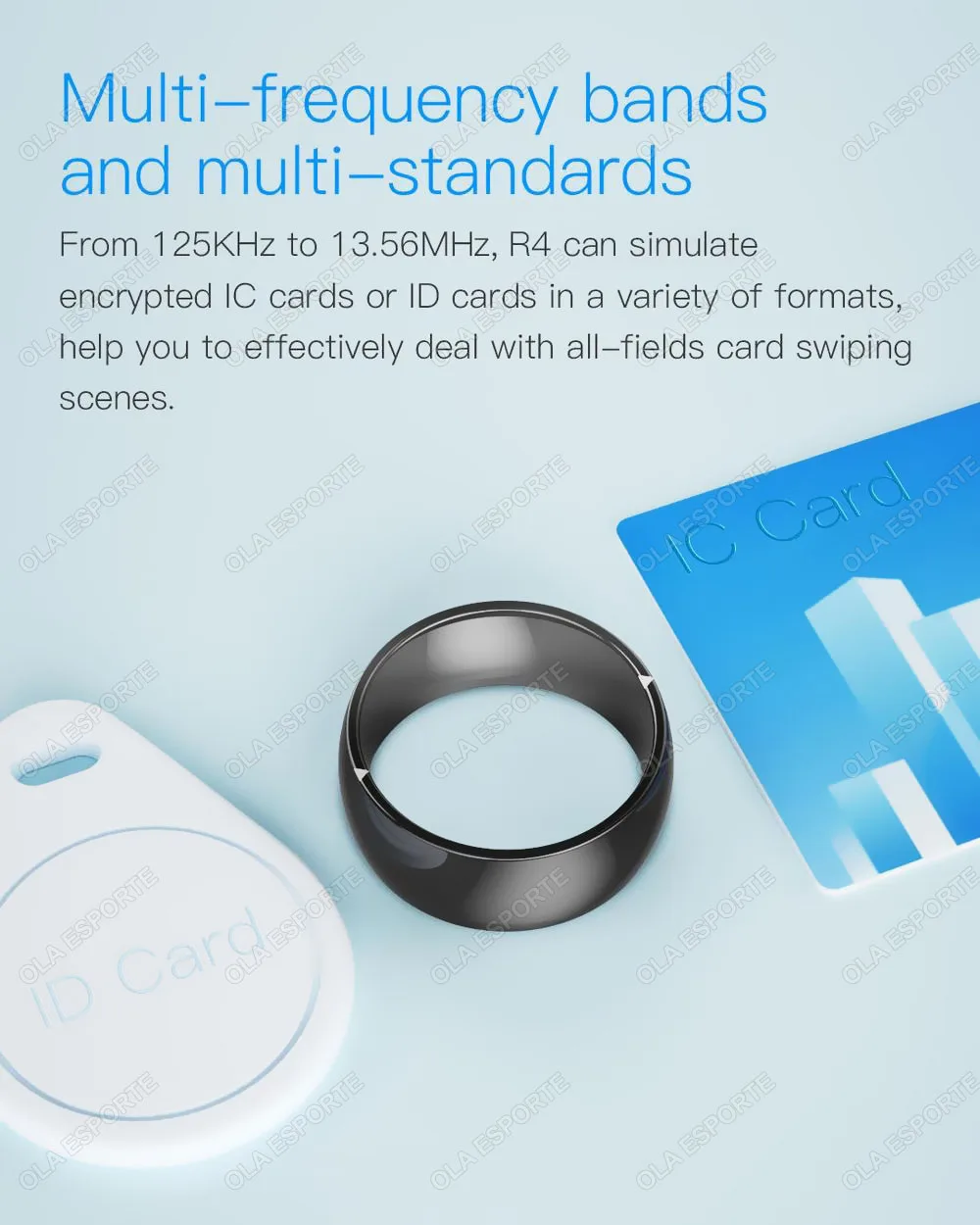 5.Card Simulation: Ola Esporte smart ring will make it easy for you to access and use a wide variety of your information, through the 6 RFID cards that coexist without conflict. Simulate simultaneously 2 IC cards, 2 ID cards and 2 Near Field Communication cards.
